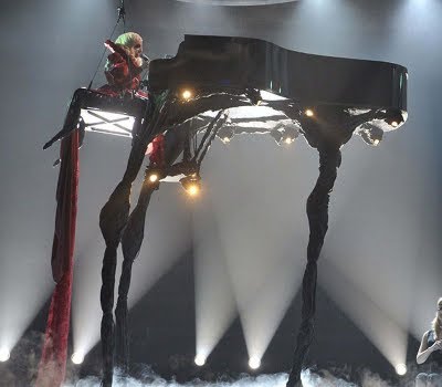 La interpretación se realiza en un lugar que recuerda al Jardín del Edén, donde el “Angel caido”-Lucifer, el que fue expulsado del cielo y tentó a Adán y Eva con el conocimiento divino preside la ceremonia. Sale fuego de las alas del ángel (después de todo, él es el “Light Bringer”) cada vez que Gaga dice: “Alejandro.” Al final de la interpretación, Gaga es levantada bajo el Ángel Caído cuando un líquido sanguíneo se filtra de la fuente debajo de él. Otro sacrificio ritual ha ocurrido en la televisión en horas de máxima audiencia.