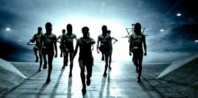 El video comienza con hombres marchando a un ritmo militar, algunos de ellos con la cabeza cubierta, tal vez dando a entender que esos hombres son prisioneros de algún tipo. Uno de los hombres está dentro de una forma piramidal, mientras que otra sostiene un hexagrama como los prisioneros de marzo. ¿Es esta una representación de las masas marchando al ritmo de la élite, sosteniendo en alto los símbolos de su propia opresión?