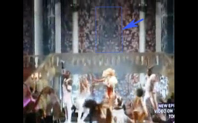 Son 23 personajes número símbolico, 22 arcanos + satán. Los números de los personajes en el escenario van cambiando simbólicamente, 6, 8 , 9 etc... El perro de 101 un dálmatas es un símbolo masón (101 es número masón, representa el 11, numero favorito para rituales satánicos de esta gentuza) y el abrigo con el oso blanco representa el sacrificio el anticristo y los sacrificios ritual para la Diosa Semiramis: Gagá va vestida con los ropajes del Anticristo.