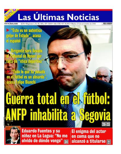 SEGOVIA IMPUGNA AL DIRECTORIO DE LA ANFP:NO PUEDE RESOLVER SU INHABILITACION